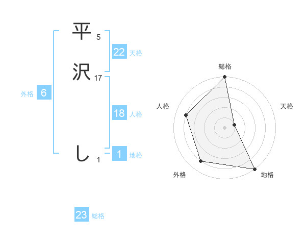 平沢 しさんの総格は23画の5点!