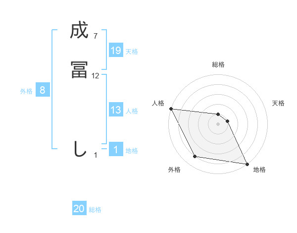 成冨 しさんの総格は20画の1点!