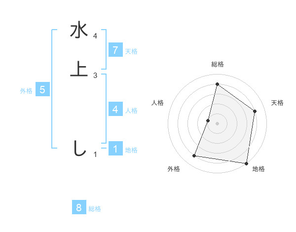 水上 しさんの地格は1画の5点!