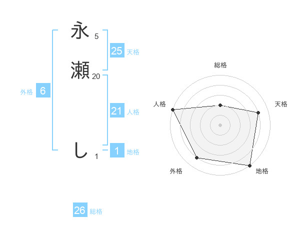 永瀬 しさんの天格は25画の4点!