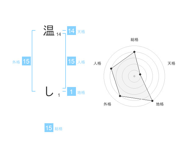 温 しさんの総格は15画の4点!