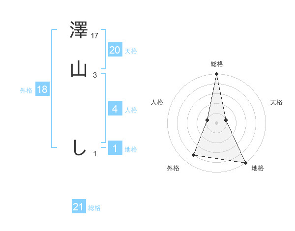 澤山 しさんの総格は21画の5点!