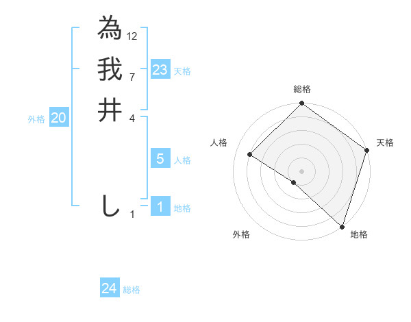 為我井 しさんの総格は24画の5点!