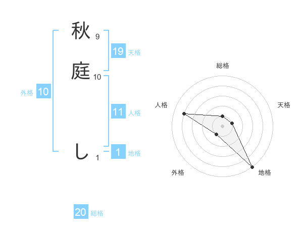 秋庭 しさんの総格は20画の1点!