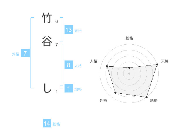 竹谷 しさんの天格は13画の5点!