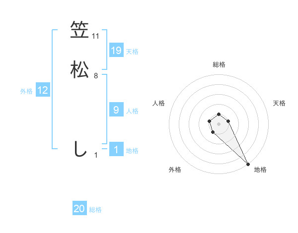 笠松 しさんの総格は20画の1点!