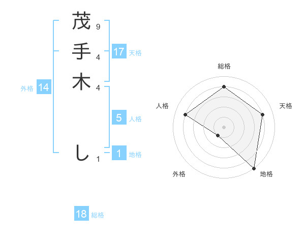 茂手木 しさんの総格は18画の4点!