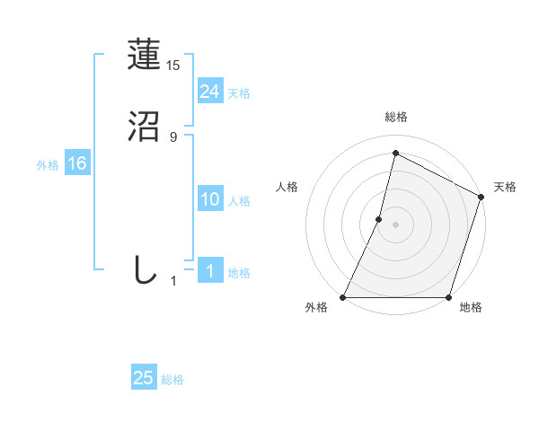 蓮沼 しさんの天格は24画の5点!