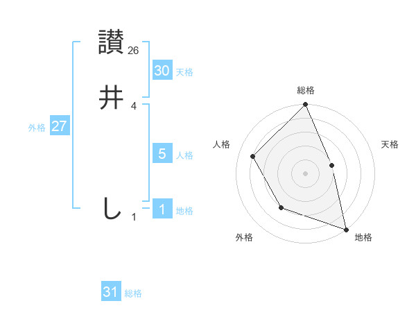 讃井 しさんの総格は31画の5点!