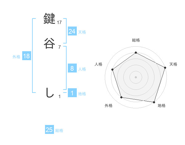 鍵谷 しさんの天格は24画の5点!
