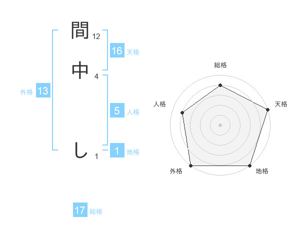 間中 しさんの天格は16画の5点!