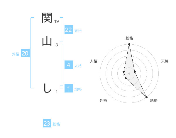 関山 しさんの外格は20画の1点!