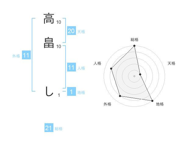 高畠 しさんの天格は20画の1点!