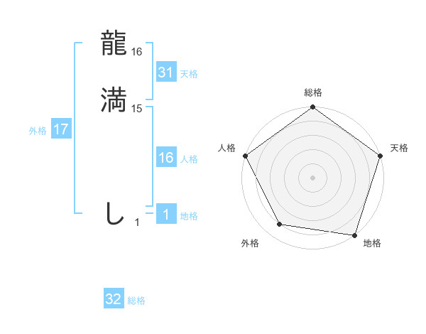 龍満 しさんの天格は31画の5点!