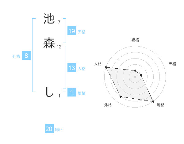 池森 しさんの総格は20画の1点!