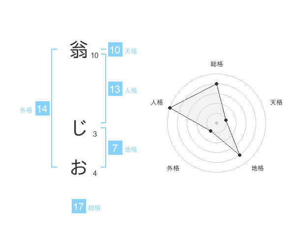 翁 じおさんの総格は17画の4点!