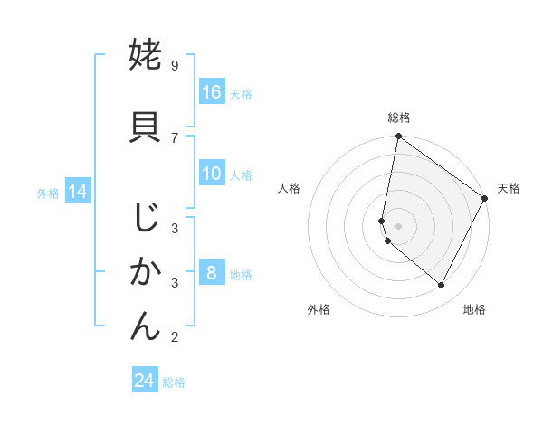 姥貝 じかんさんを姓名の画数から五運を鑑定