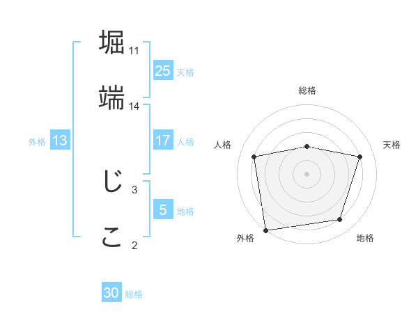 堀端 じこさんの外格は13画の5点!