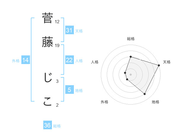 菅藤 じこさんを姓名の画数から五運を鑑定