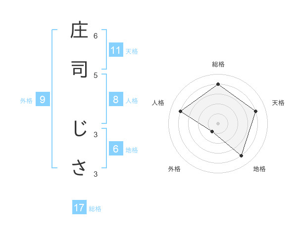 庄司 じささんの総格は17画の4点!
