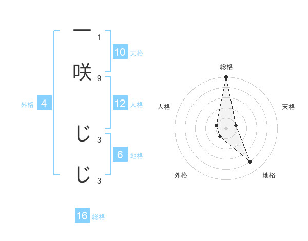 一咲 じじさんの総格は16画の5点!