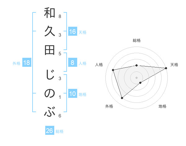 和久田 じのぶさんを姓名の画数から五運を鑑定