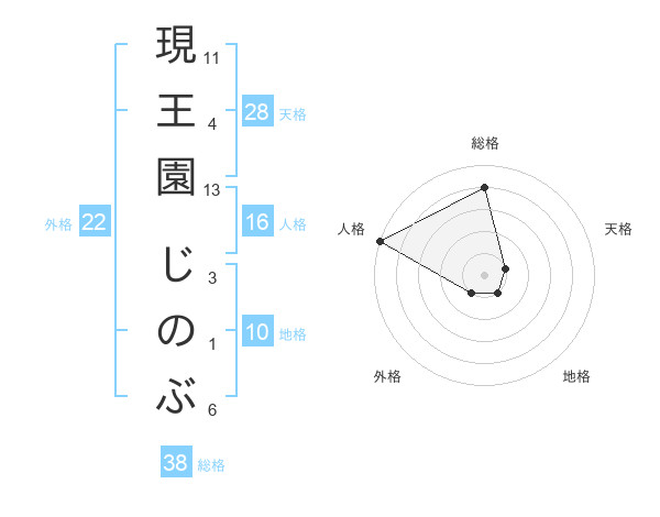 現王園 じのぶさんの総格は38画の4点!