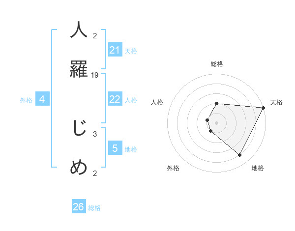 人羅 じめさんの天格は21画の5点!