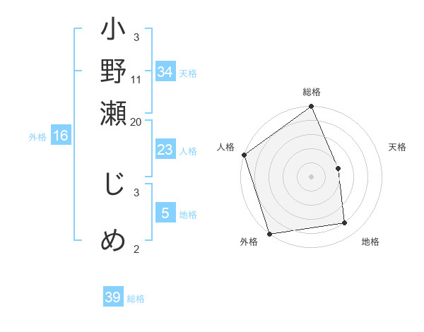 小野瀬 じめさんを姓名の画数から五運を鑑定