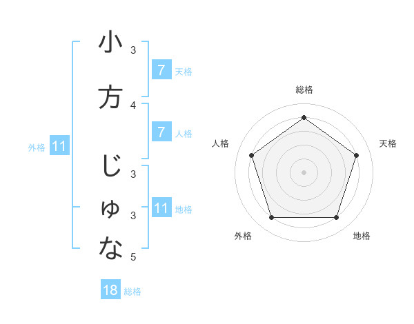 小方 じゅなさんを姓名の画数から五運を鑑定