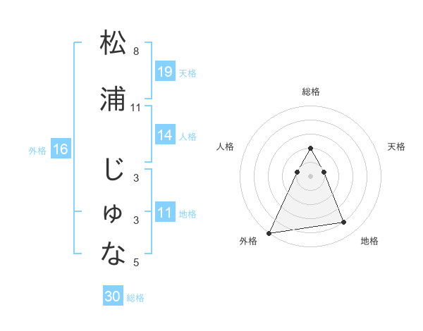 松浦 じゅなさんの外格は16画の5点