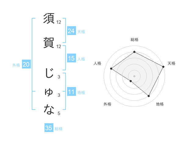 須賀 じゅなさんを姓名の画数から五運を鑑定