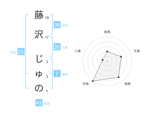 藤沢 じゅのさんを姓名の画数から五運を鑑定