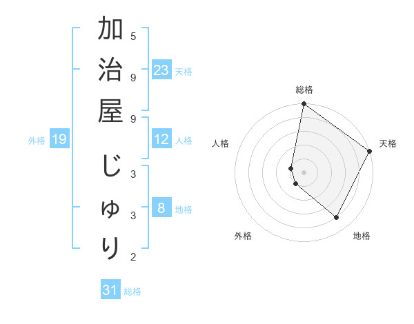 加治屋 じゅりさんを姓名の画数から五運を鑑定