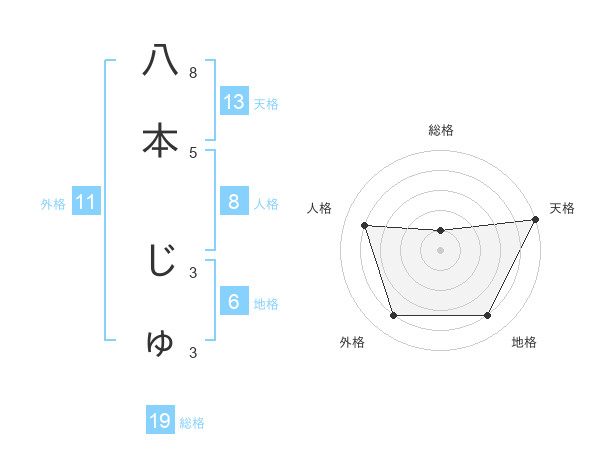 八本 じゅさんの天格は13画の5点!