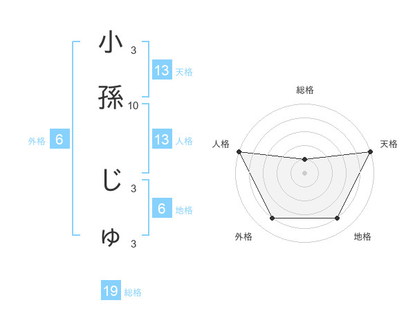 小孫 じゅさんの天格は13画の5点!