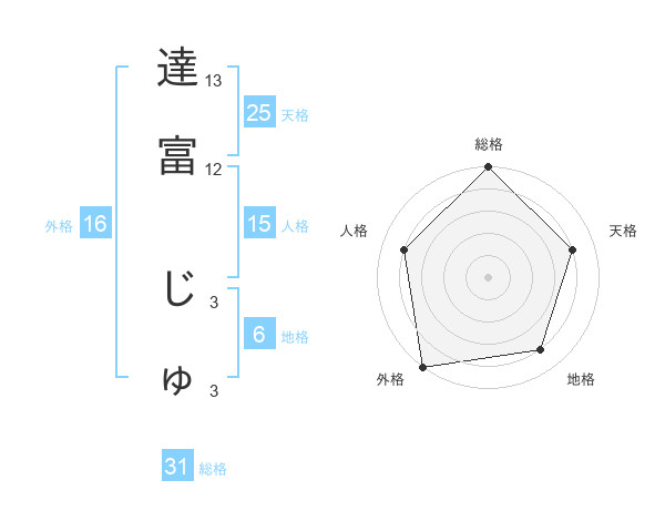 達富 じゅさんの総格は31画の5点!