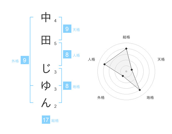 中田 じゆんさんを姓名の画数から五運を鑑定