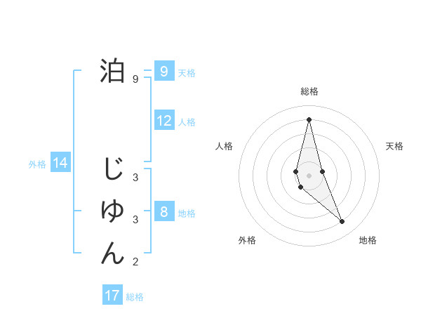 泊 じゆんさんを姓名の画数から五運を鑑定