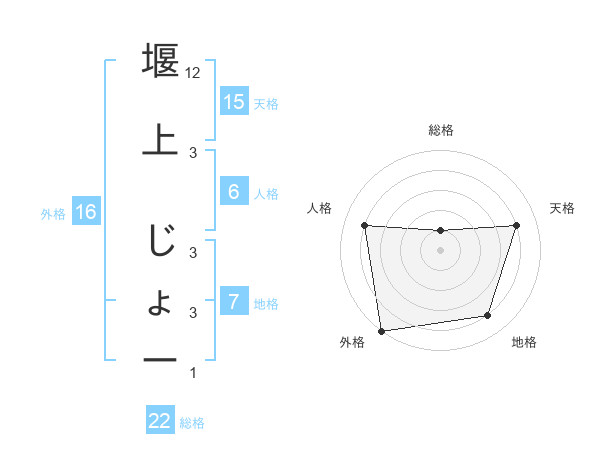堰上 じょーさんの外格は16画の5点