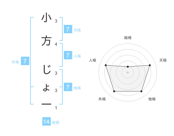 小方 じょーさんの地格は7画の4点