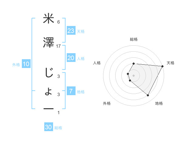米澤 じょーさんを姓名の画数から五運を鑑定