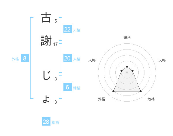 古謝 じょさんの総格は28画の1点!