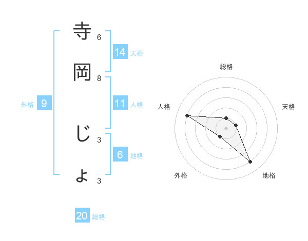 寺岡 じょさんを姓名の画数から五運を鑑定