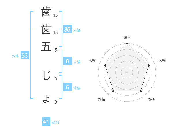 歯歯五 じょさんを姓名の画数から五運を鑑定