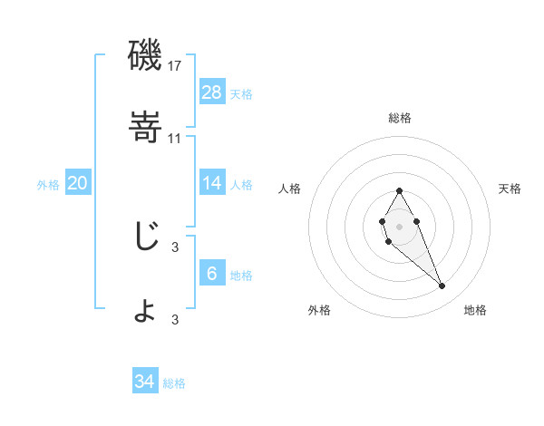 磯嵜 じょさんを姓名の画数から五運を鑑定
