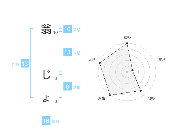 翁 じょさんの外格は13画の5点!