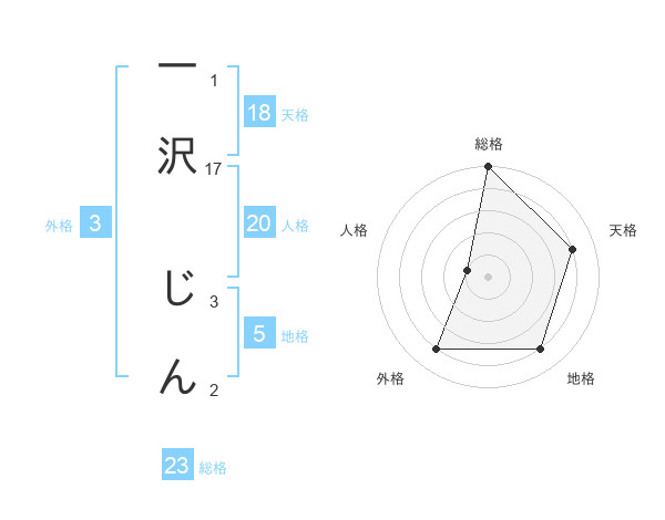 一沢 じんさんの総格は23画の5点!