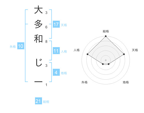 大多和 じーさんの総格は21画の5点!