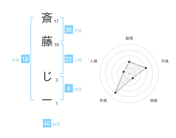 斎藤 じーさんの総格は40画の2点!